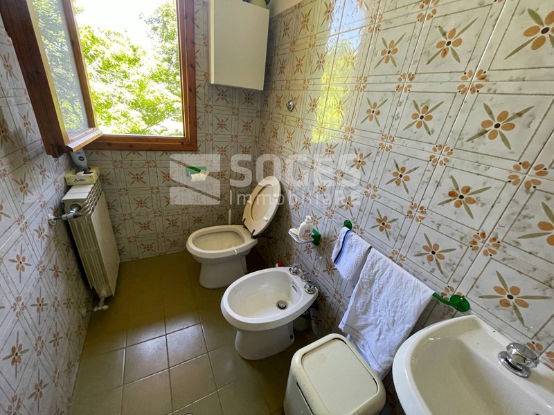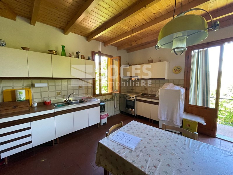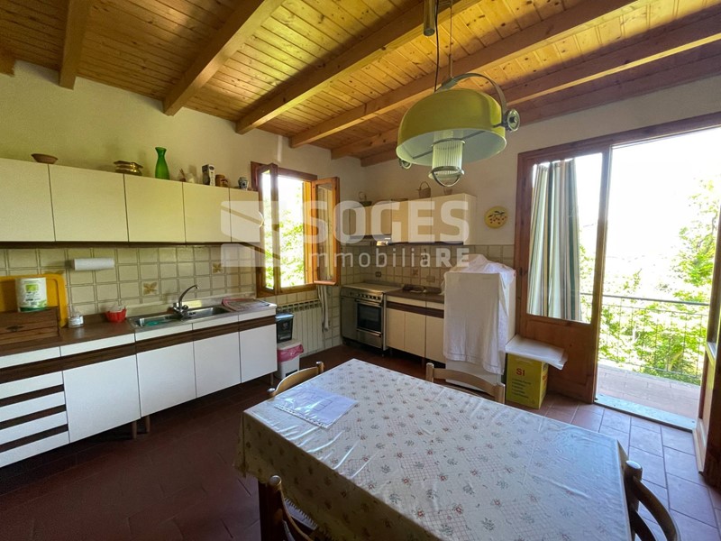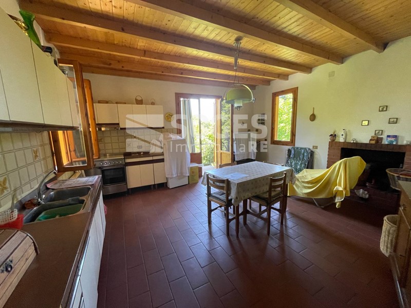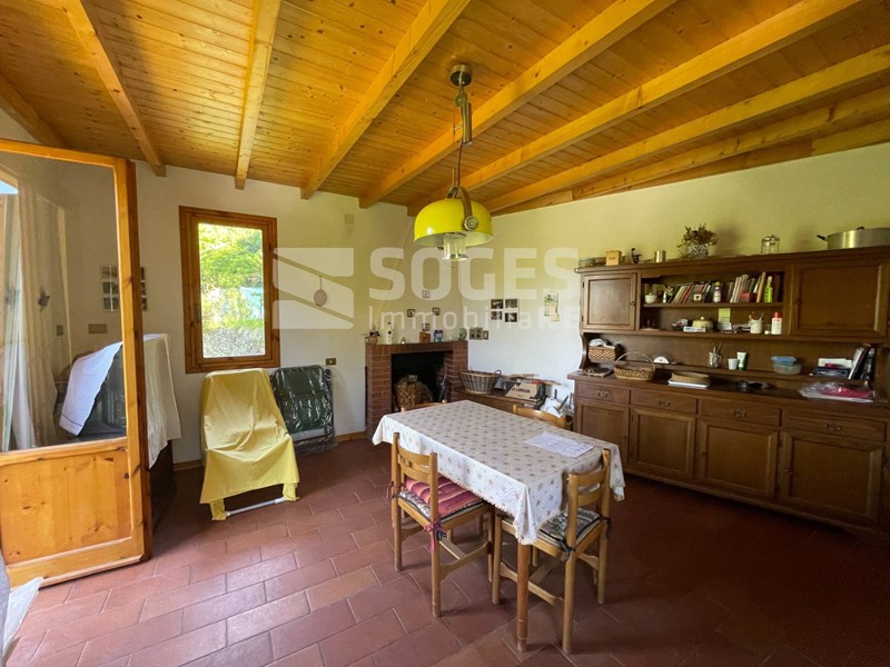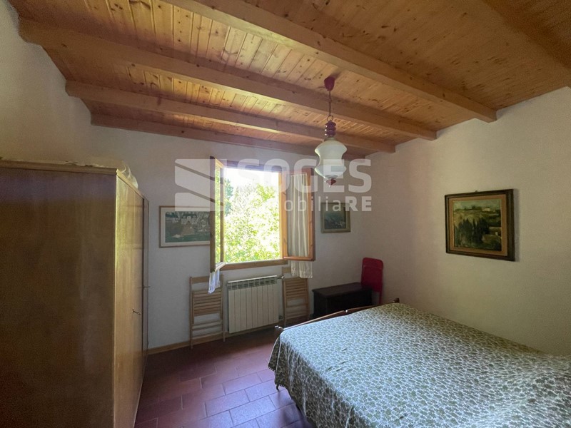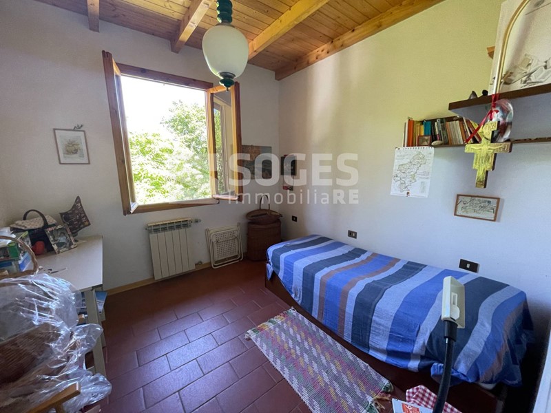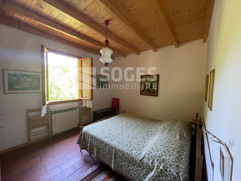 LONDA Loc. Vierle, piacevole appartamento in villetta quadrifamiliare anni 80 ma in buone condizioni, posto al piano primo ed ultimo con ingresso indipendente da scala esclusiva, dotato di giardino di 700 mq quasi completamente pianeggiante, con accesso carrabile e possibilità di accedere anche con più auto. Internamente si compone di luminoso soggiorno con angolo cottura, dotato di termocamino, finestra e balcone, camera matrimoniale, camera singola e servizio finestrato. Pavimenti in cotto con infissi in legno e persiane, piacevole soffitto rivestito con travetti in legno. Buone condizioni ed attualmente abitato come seconda casa, riscaldamento ed acqua sanitaria alimentati dal termocamino in inverno, scaldabagno elettrico per l'estate. Libero in tempi brevi. Adatto anche come prima casa perché a soli 5 minuti da Londa. Per info sede di Pontassieve 055.8316480, rif. 48492 su www.soges.it