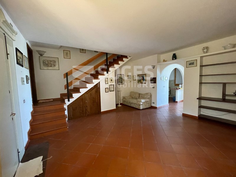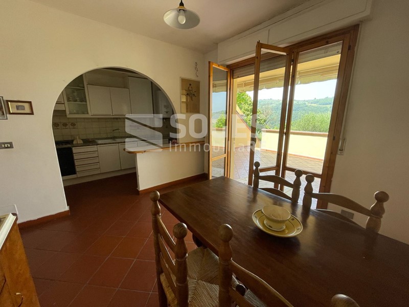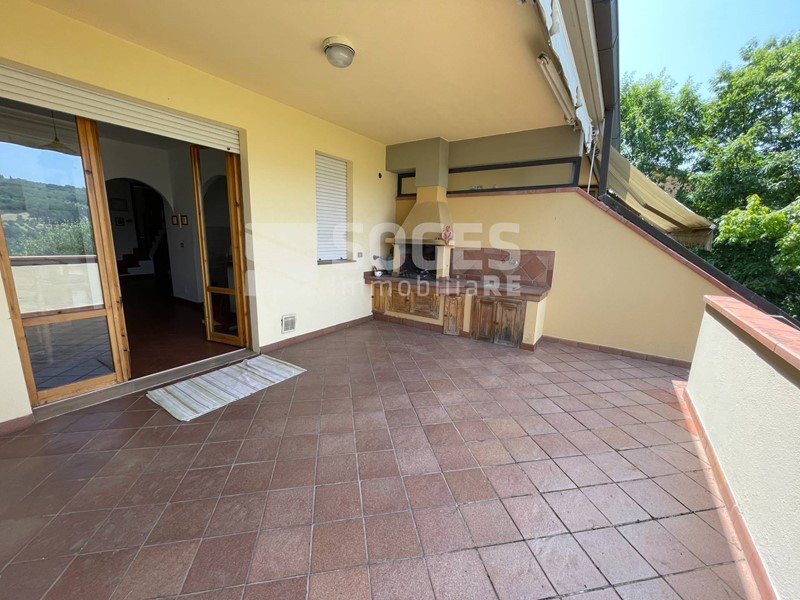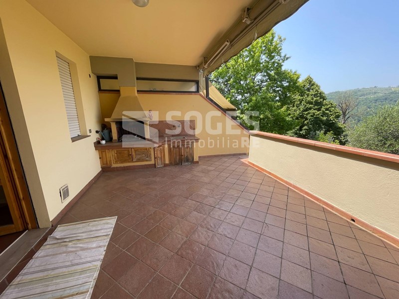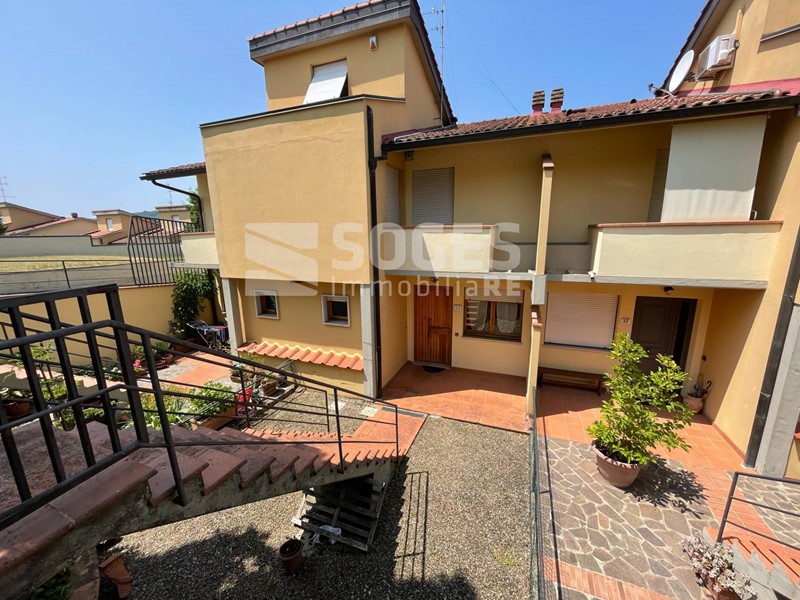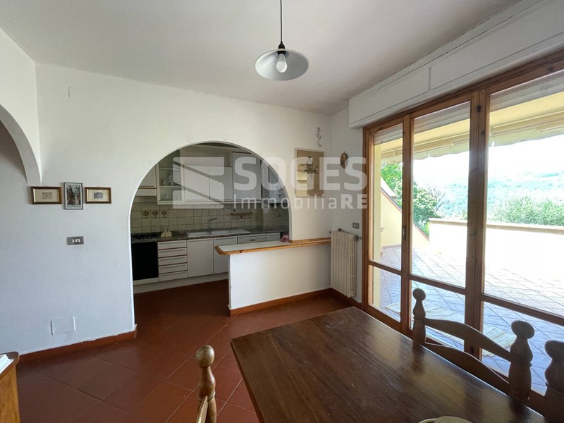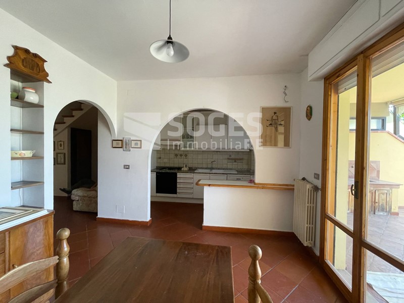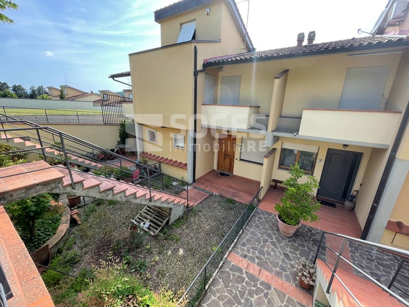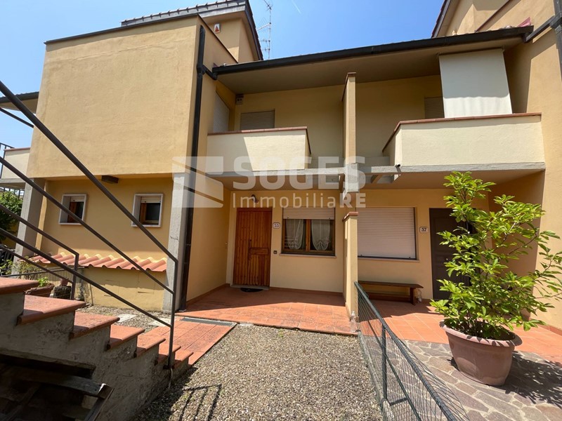 In complesso di villette a schiera di metà anni 80, a 5 km da Pontassieve e vicino anche alla stazione di S.Ellero (loc. Carbonile), bel terratetto di 122 mq, oltre terrazzo coperto di mq 22 e panoramico sulle colline, giardino di mq 125 fra frontale e tergale, oltre tavernetta finestrata di mq 22 con accesso al giardino. Si compone al piano terra di un bel soggiorno con predisposizione per il camino, sala pranzo con accesso al terrazzo panoramico coperto ed all'ampia zona cottura divisa da muretto basso; allo stesso piano troviamo un comodo ripostiglio ed il bagno di servizio, mentre scendendo dal terrazzo si accede al giardino tergale e da questo alla piacevole taverna. Salendo al primo piano troviamo tre camere matrimoniali, il servizio principale e due comodi balconi; tutto il piano primo è coperto da una soffitta con altezza di m. 1,50 nel punto centrale. Fa parte della proprietà anche un garage di 15 mq posto a poche decine di metri dall'abitazione. Buone condizioni con pavimenti in cotto e parquet, termosingolo a metano, libero subito. Per info sede di Pontassieve 055.8316480, rif. 48494 su www.soges.it.