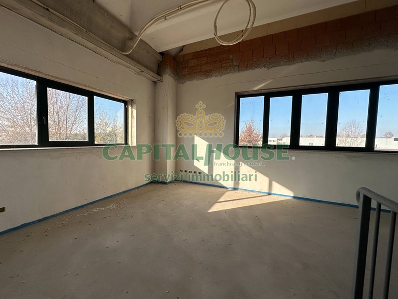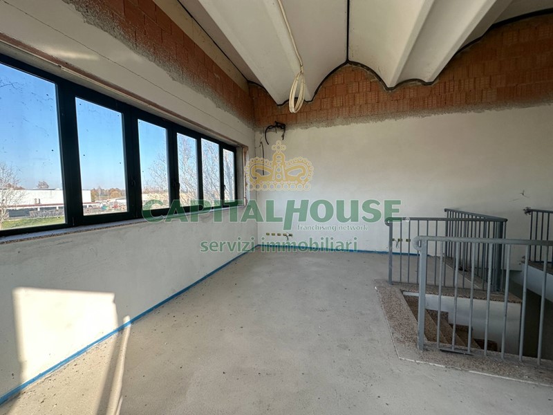 - Parte Centrale: Unico livello fuori terra di circa 1.020 mq, con un'altezza utile interna di 7,00 m. Attualmente libero.