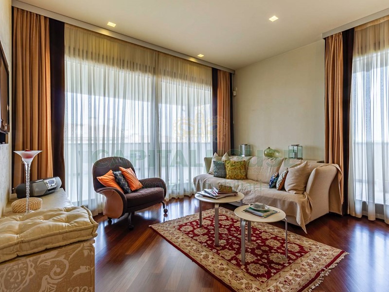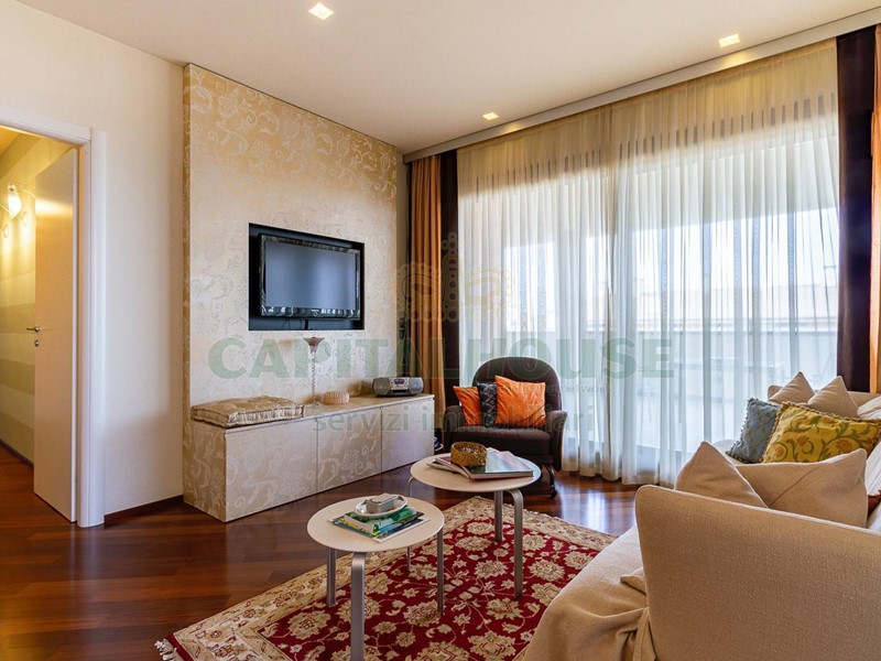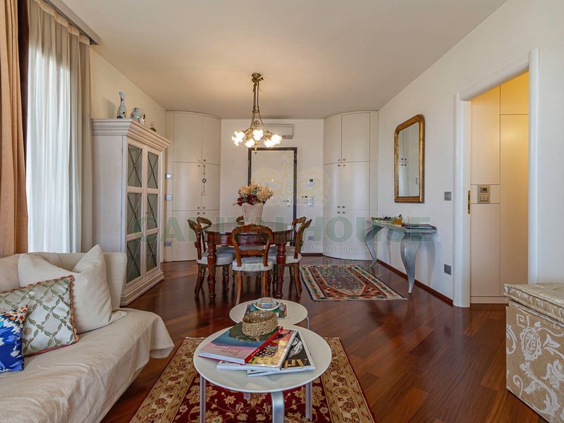 Qui, 116 mq di pura raffinatezza si fondono armoniosamente con un terrazzo spettacolare di 80 mq, che abbraccia la casa su tre lati: un vero salotto allaperto dove vivere momenti di relax, cene estive e tramonti indimenticabili.