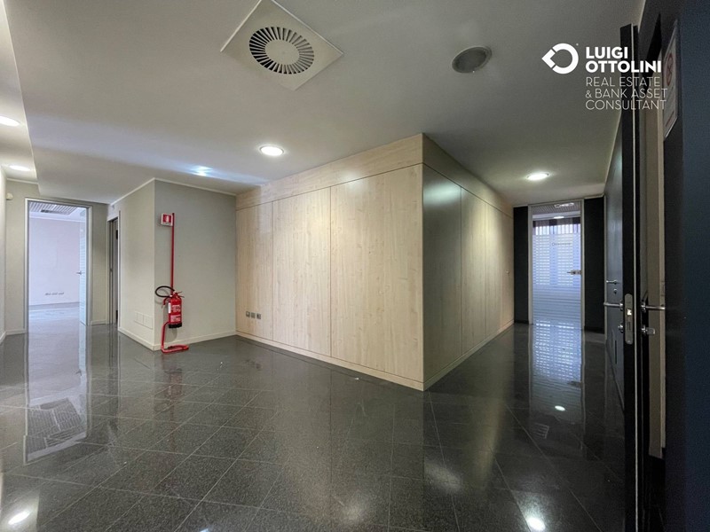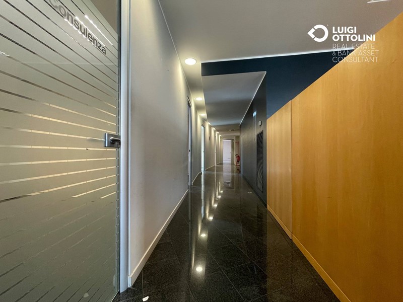 - Al piano terra lo spazio commerciale principale con ingresso, reception, backoffice, 4 uffici privati, una sala riunioni e 2 bagni.