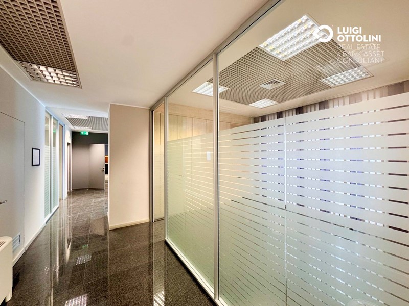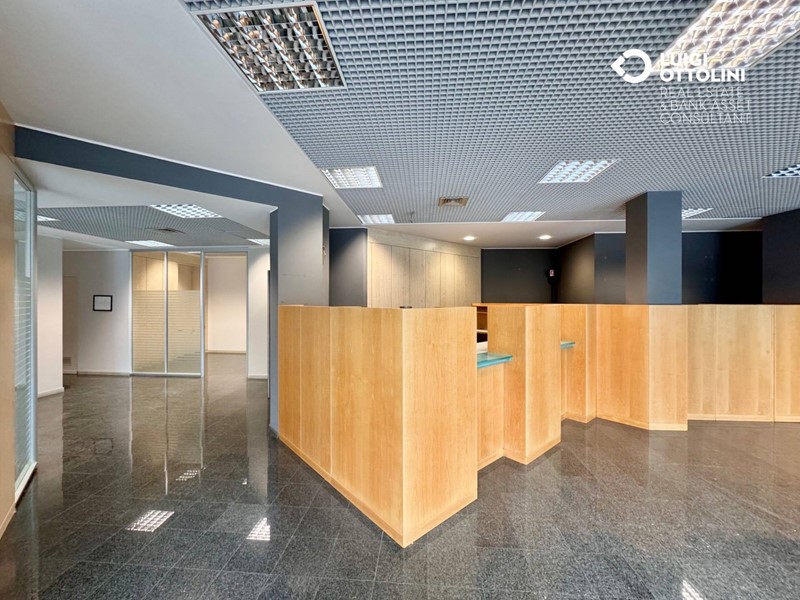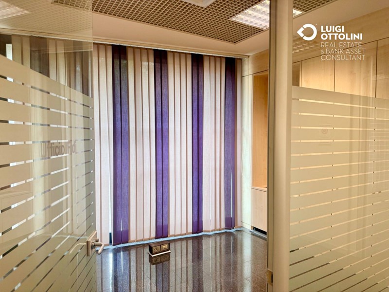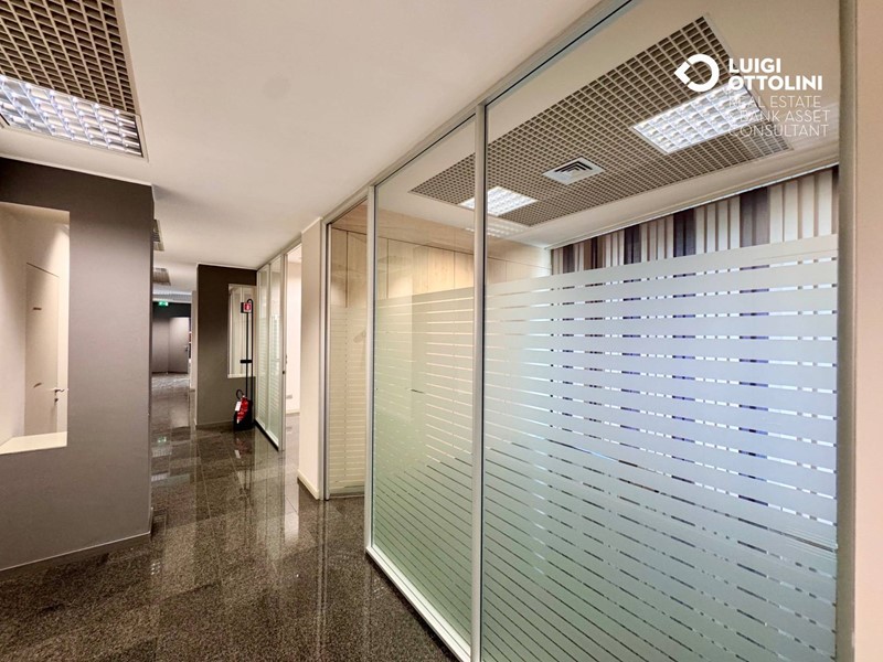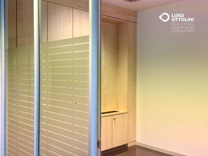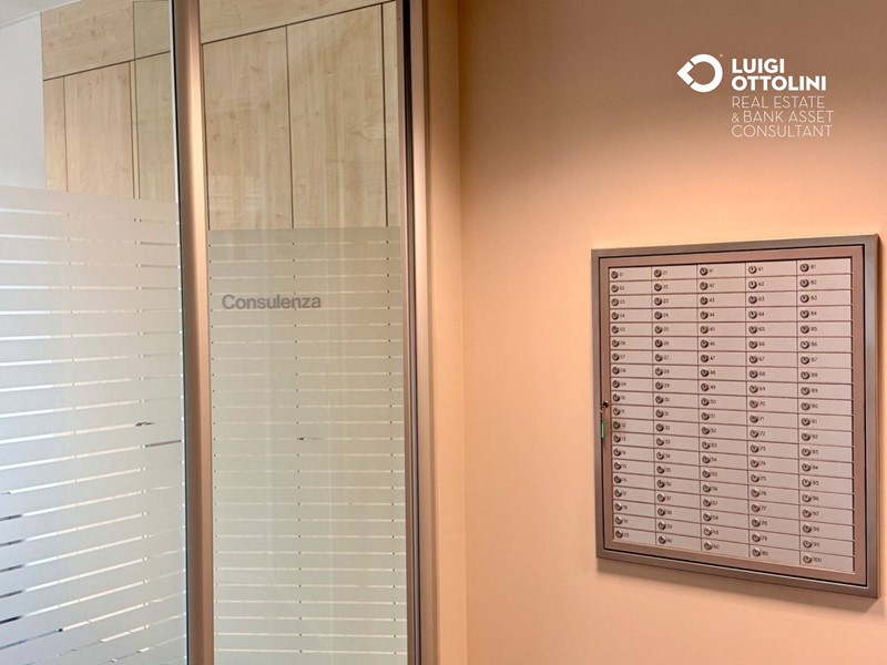 Il locale è composto da 8 locali, attualmente suddivisi in diverse zone separate da divisori in vetro per un migliore sfruttamento dello spazio: un'area dedicata all'accoglienza ed alla vendita, 4 ufficio, una sala riunioni, due bagni, 3 ripostigli e altri locali di servizio.
