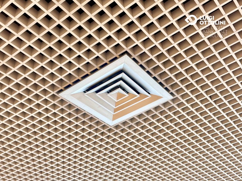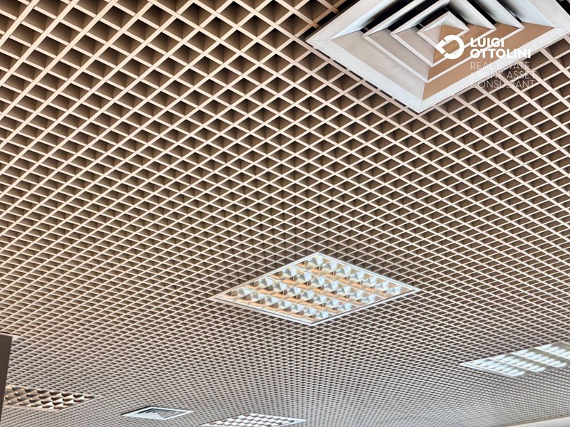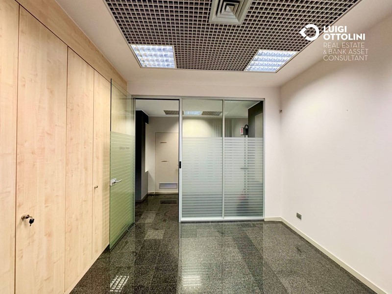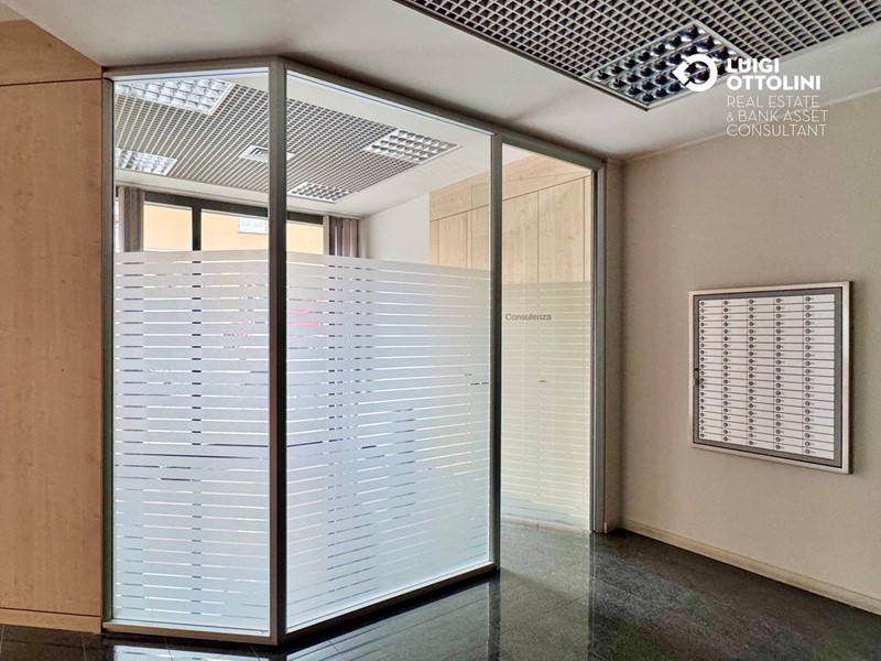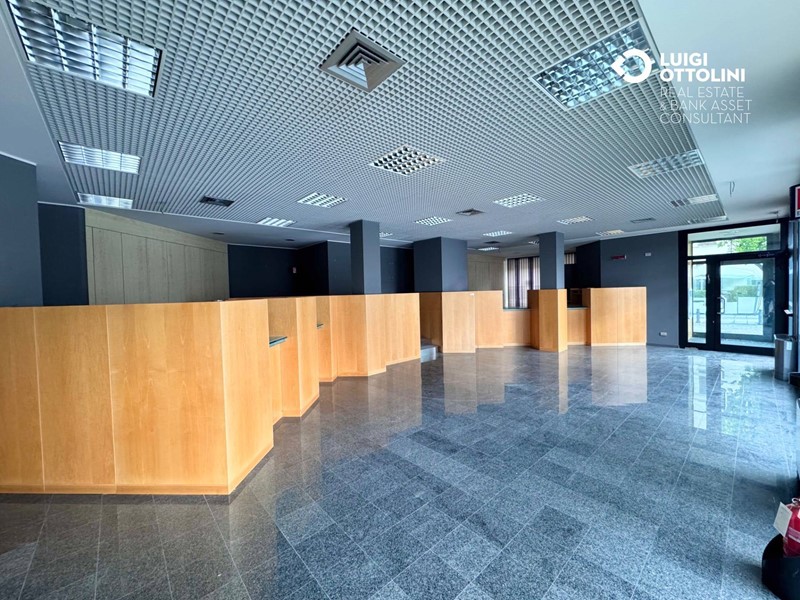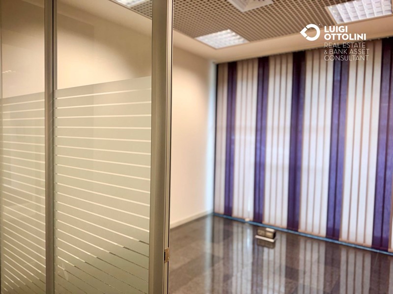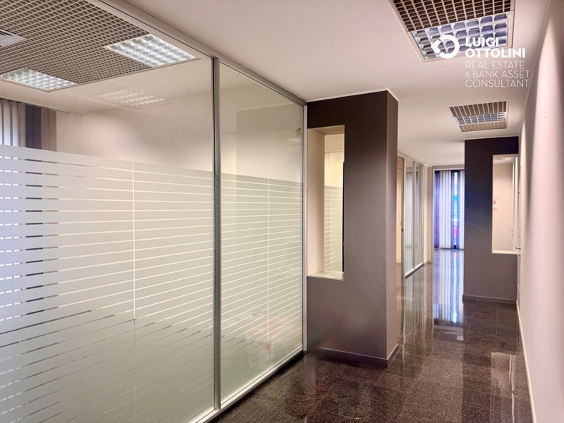 Il locale è composto da 8 locali, attualmente suddivisi in diverse zone separate da divisori in vetro per un migliore sfruttamento dello spazio: un'area dedicata all'accoglienza ed alla vendita, 4 ufficio, una sala riunioni, due bagni, 3 ripostigli e altri locali di servizio.