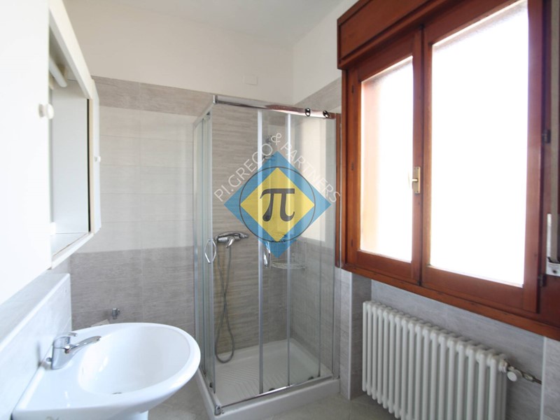 Il bagno ristrutturato è finestrato e caratterizzato da box doccia.