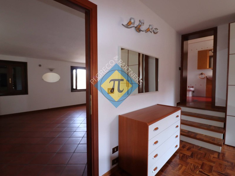 Comodo appartamento che occupa l'intero primo e secondo piano di bifamigliare, limmobile è costituito dalla fusione di due appartamenti e presenta una grande luminosità ed ampiezza di spazi. Si raggiunge il piano da ingresso in corte esclusiva recintata di proprietà con piccola aiuola verde di abbellimento, salendo le scale si trova un balcone privato che immette direttamente alle due zone living separate; infatti limmobile ha la peculiarità di essere diviso in due appartamenti contigui e internamente completamente collegati che permettono la coabitazione di due nuclei famigliari mantenendone però la privacy. Il primo ingresso da accesso ad una delle due zone living entrambe con cucina arredata ed accessoriata, si trova quindi un disimpegno da cui si sale al secondo piano dove è collocata la zona notte costituita da camera matrimoniale e camera singola. Al primo piano invece la pianta si sviluppa in bagno, ripostiglio, spaziosa camera matrimoniale con bagno privato, ampio salone di rappresentanza, seconda zona living, a cui si accede anche direttamente dallesterno tramite il secondo ingresso, ampissima veranda coperta da cui si ammira un panorama stupendo sulla pianura e sulla collina di Sarone. Al piano seminterrato si trovano i locali di servizio costituiti da garage doppio e cantina, la CT in comproprietà e due posti auto esterni. Che aspettate quindi, contattateci per una visita, per accertarvi di persona della opportunità. Inoltre il team dello Studio Immobiliare PI.GRECO è disponibile alla valutazione gratuita dei vostri immobili. Chiamateci per un sopralluogo ed una veloce e felice conclusione della trattativa. Studio Immobiliare PI.GRECO un servizio concreto.