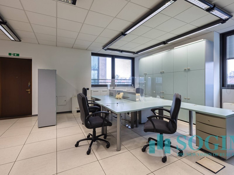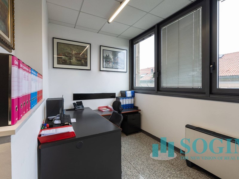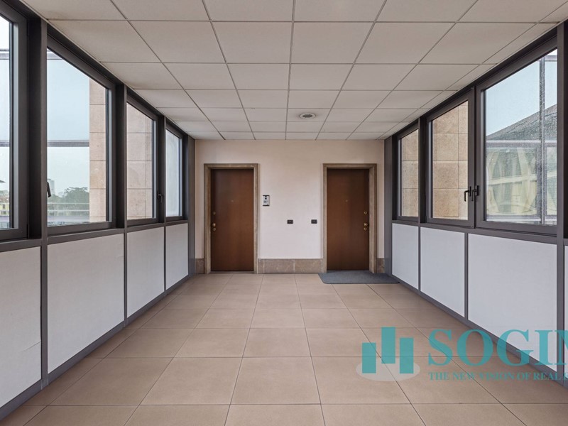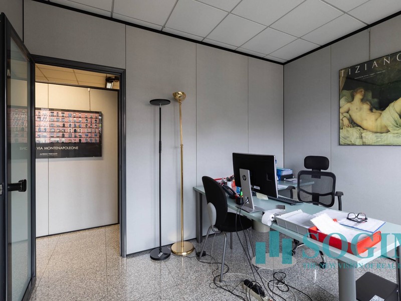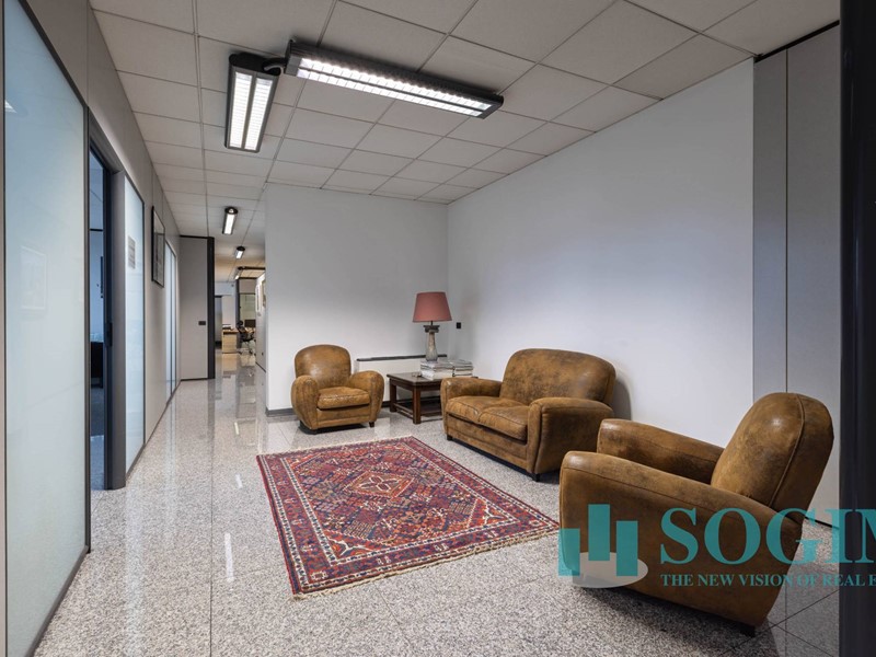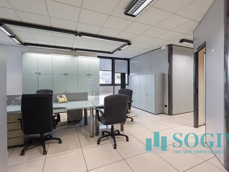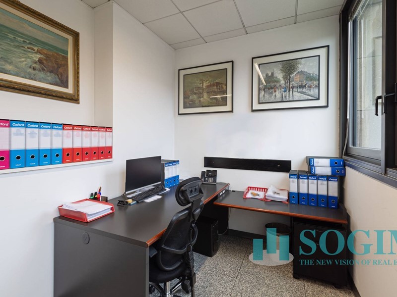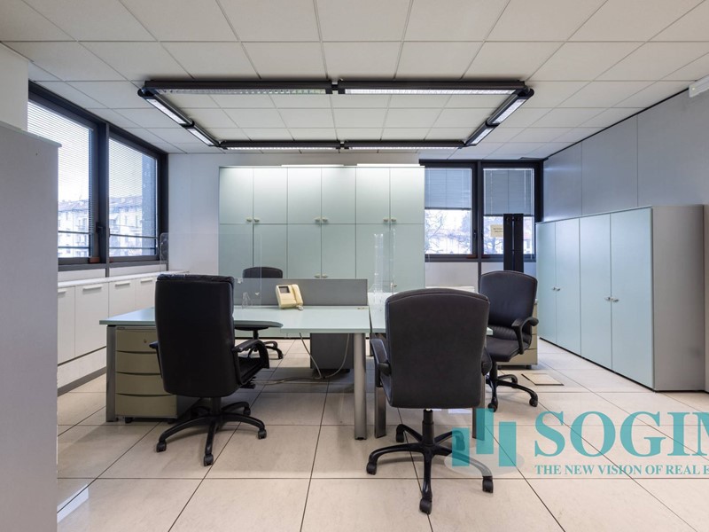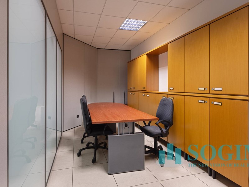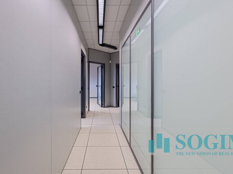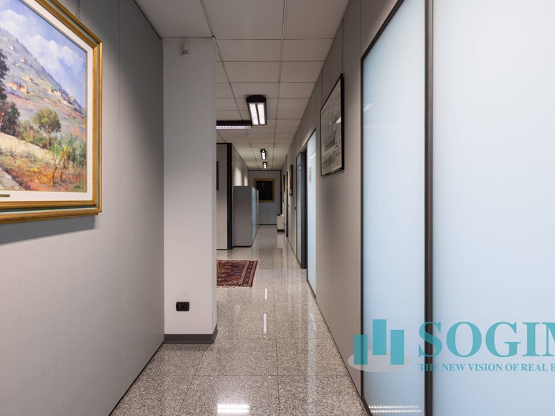 Situato al terzo piano, l'ufficio dispone di 18 locali e 4 bagni, per un totale di 477 metri quadrati suddiviso in due unità sullo stesso piano ma con due ingressi.