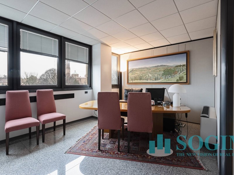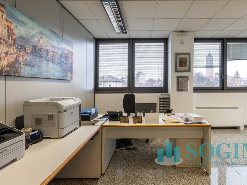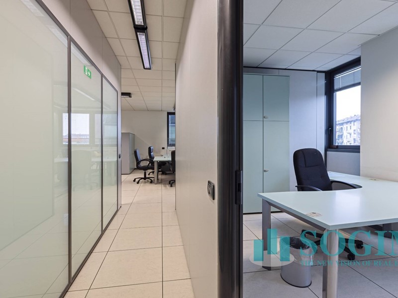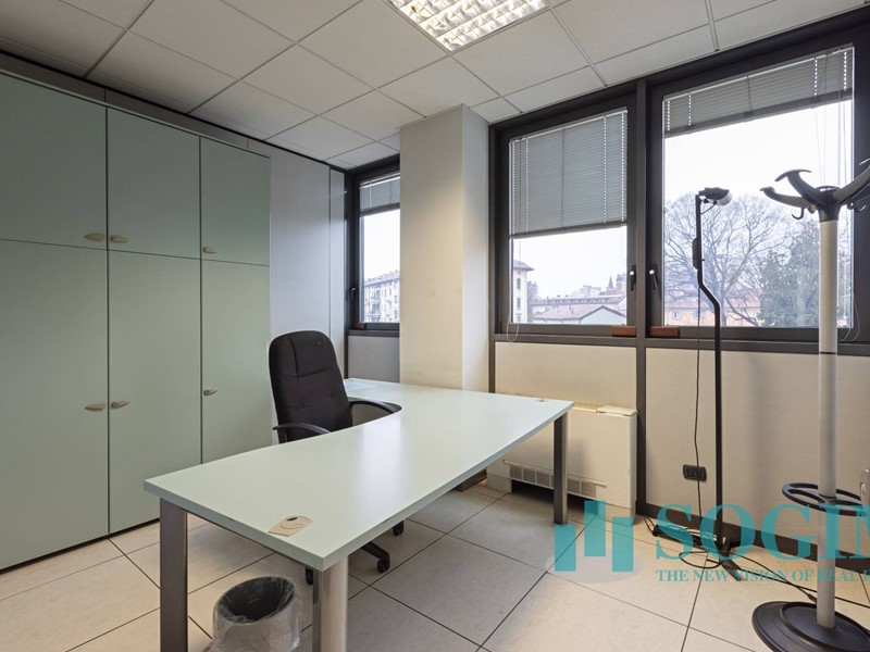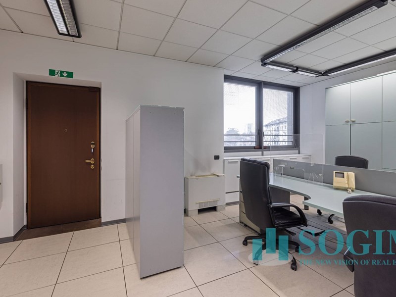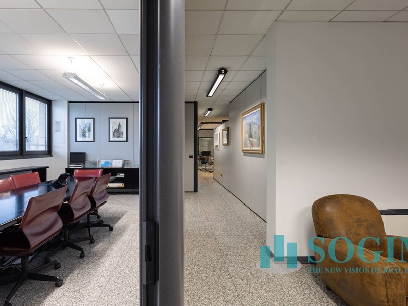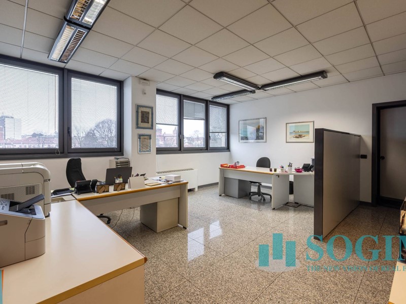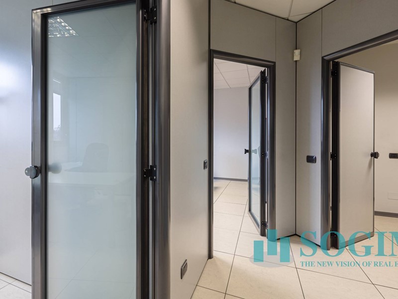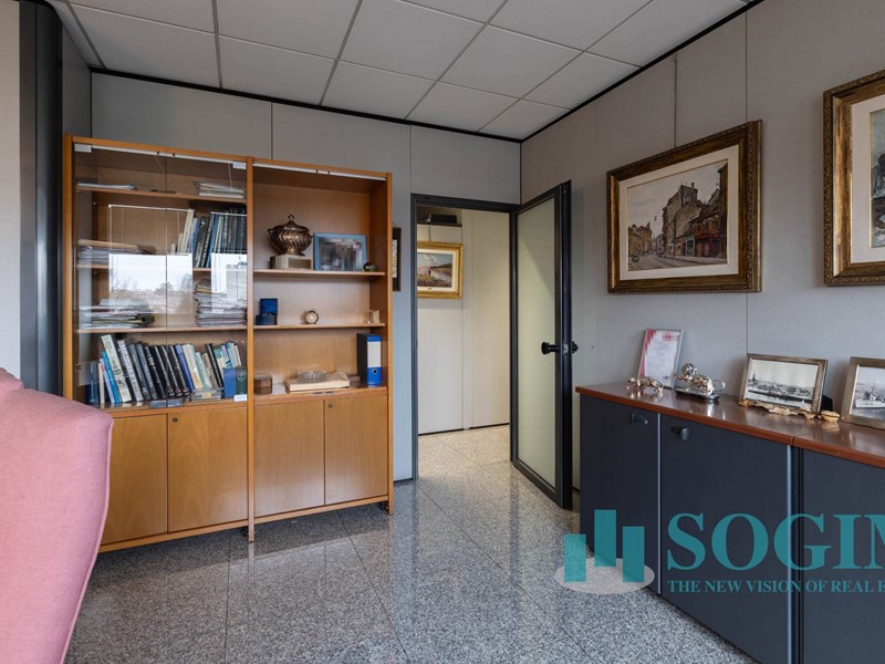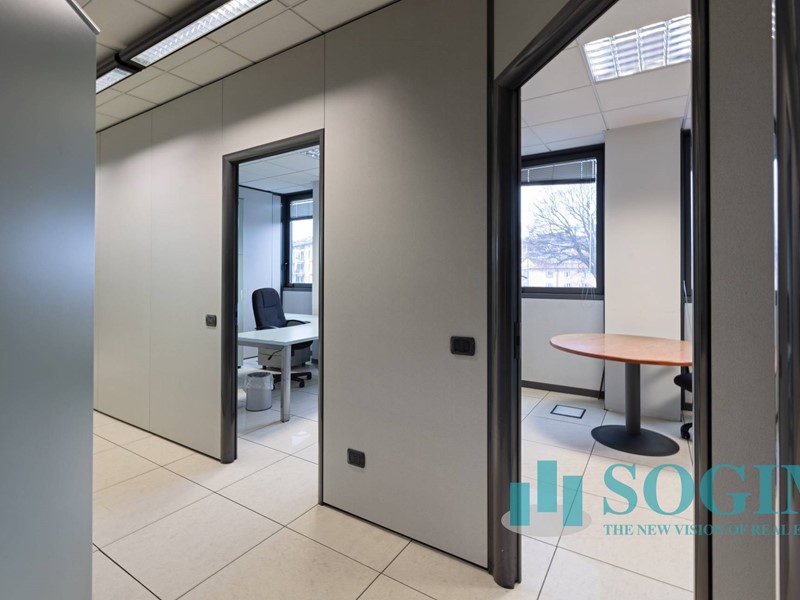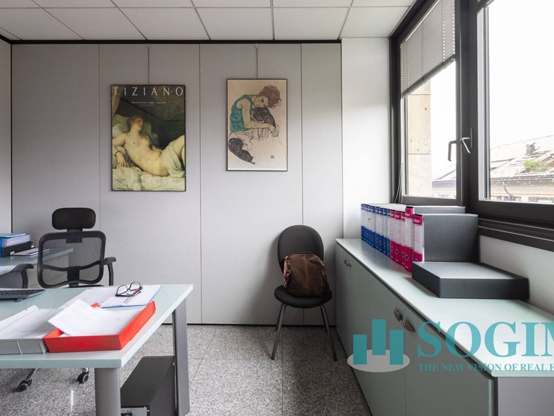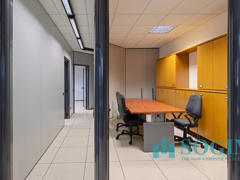 Situato al terzo piano, l'ufficio dispone di 18 locali e 4 bagni, per un totale di 477 metri quadrati suddiviso in due unità sullo stesso piano ma con due ingressi.