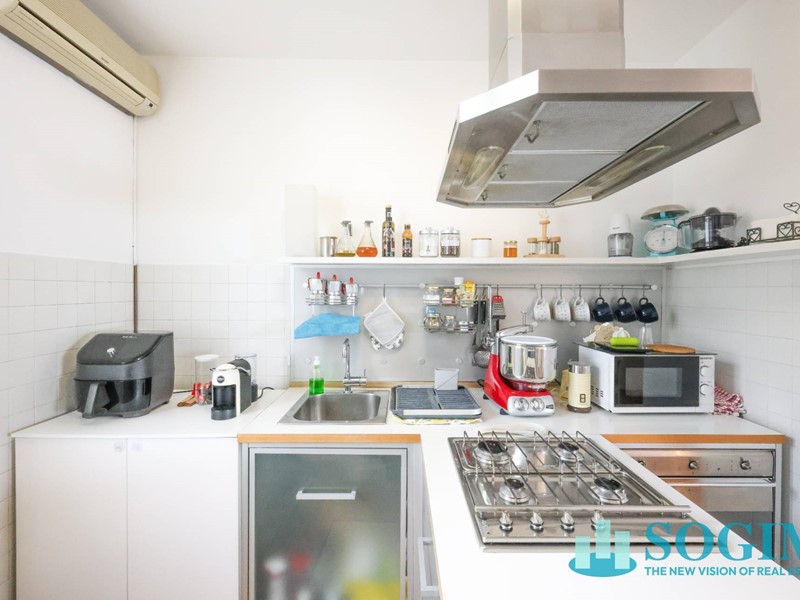 Entrando troviamo una zona giorno ampia e luminosa con porta finestra per accedere allo spazioso balcone con affaccio sul giardino interno, confortevole angolo cottura con cucina a vista e bagno finestrato ben rifinito.