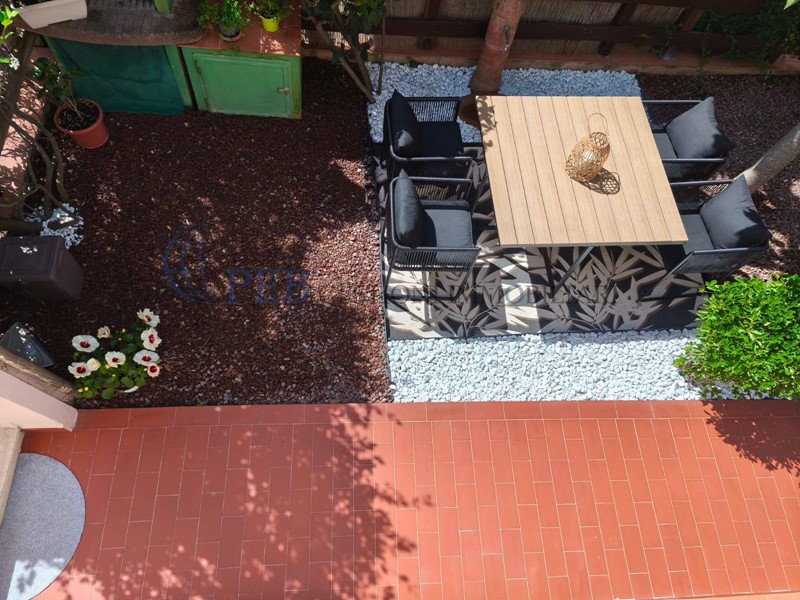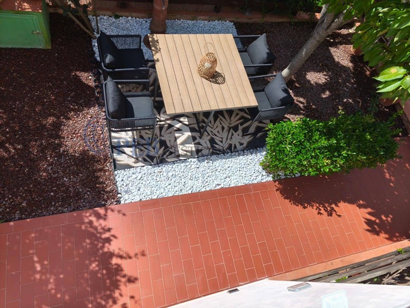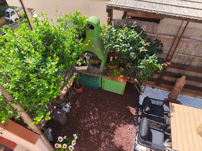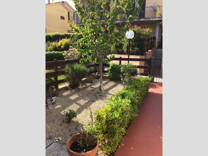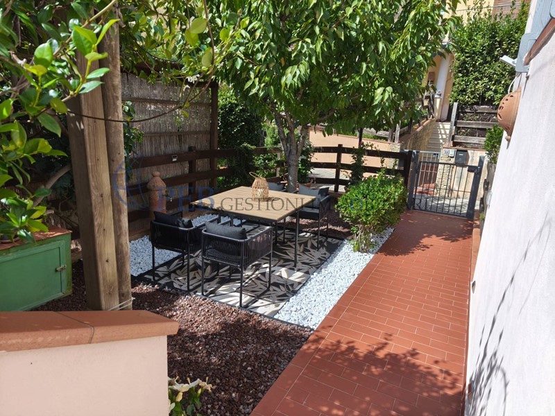 Dal cancelletto dingresso si accede a un curato giardino con area barbecue, ideale per pranzi e momenti di relax allaperto, che conduce direttamente alla porta di casa.