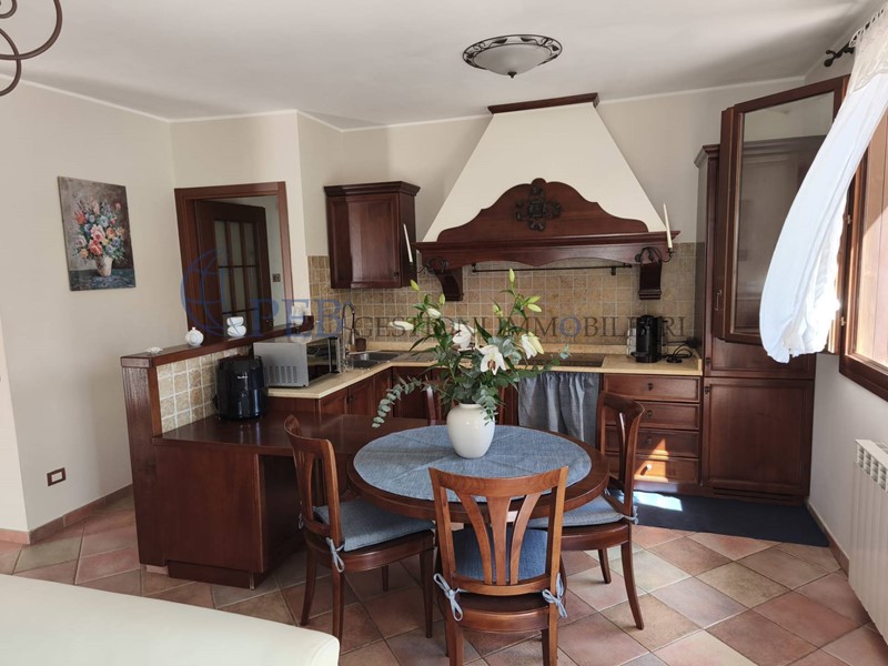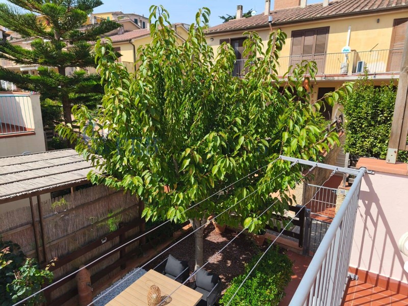 Una comoda scala in muratura, rifinita con lo stesso pavimento della zona giorno, conduce al secondo piano, dove troviamo una camera di passaggio, una camera matrimoniale, un secondo bagno, una soffitta pavimentata e riscaldata, utilizzabile come ripostiglio o ulteriore ambiente abitabile, e un terrazzino vivibile con piacevole affaccio aperto.