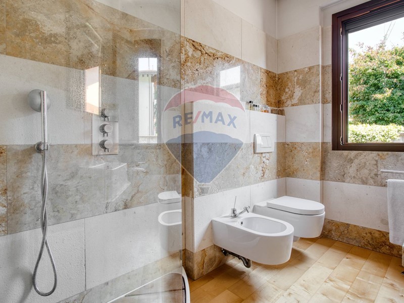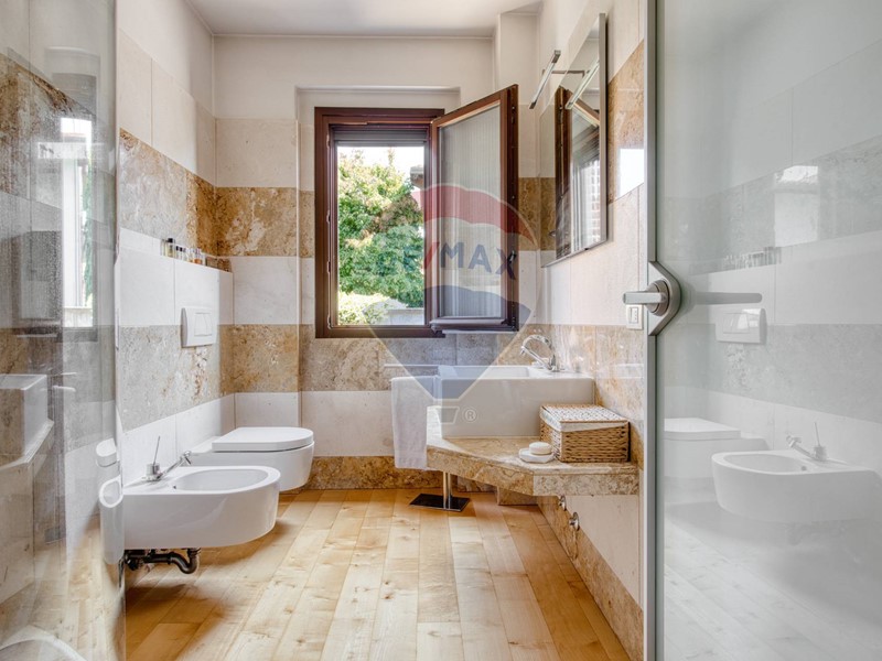 Le finiture sono di alto livello: parquet e riscaldamento a pavimento ai piani superiori, raffrescamento canalizzato, impianto dallarme e videosorveglianza.