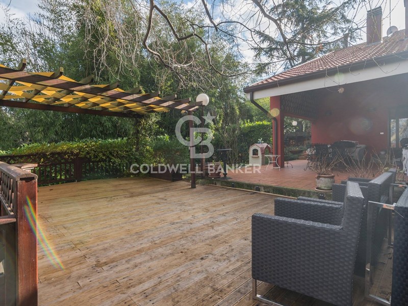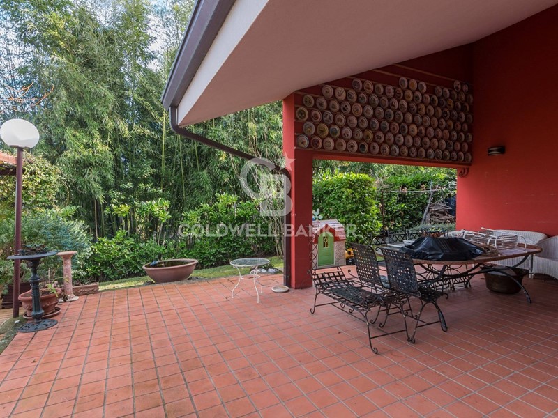 La villa vanta ampi spazi esterni che includono un bellissimo giardino piantumato, portici e altre aree adatte a svariate attività all'aperto.