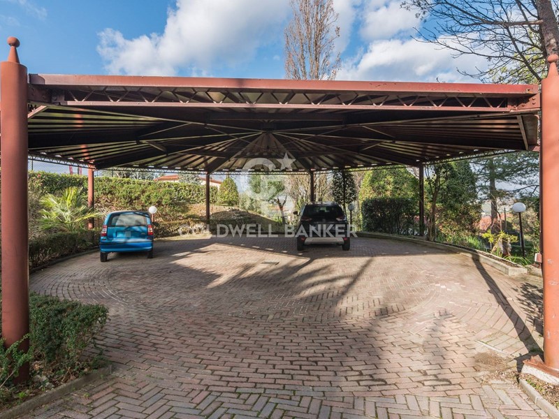 La proprietà si completa con un garage esterno di circa 50 mq, inoltre parte del giardino privato è dedicato ad una zona coperta per posti auto:
