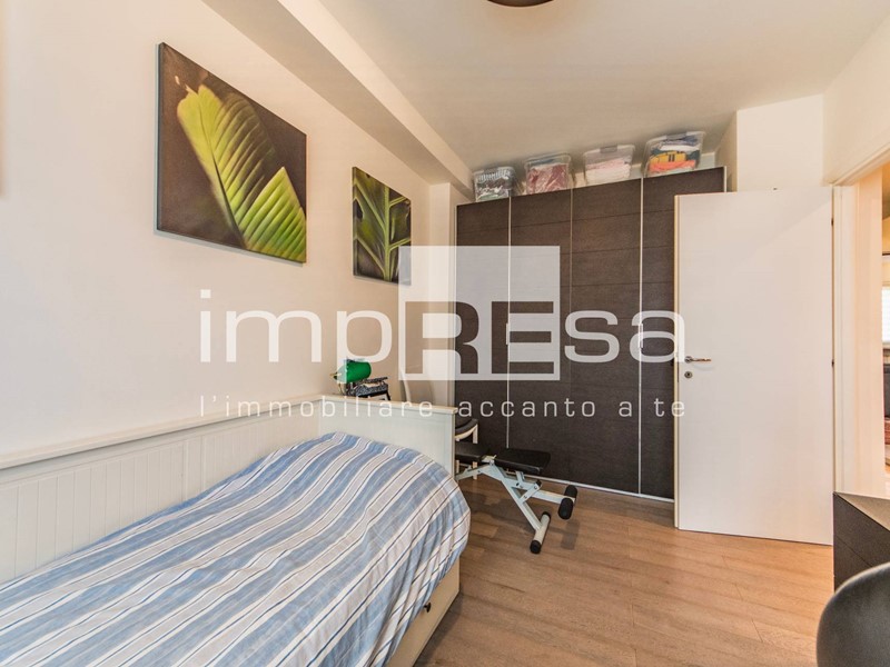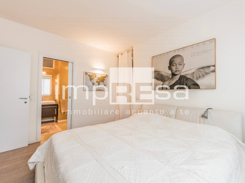 L'immobile è composto da ingresso in zona giorno con cucina semi aperta, disimpegno, 1 camera matrimoniale, 1 singola, cabina armadio e doppi servizi.