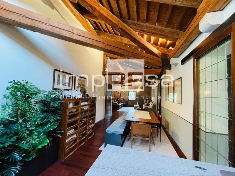Splendido appartamento dalle generose dimensioni, composto da tre camere doppi servizi, soggiorno e angolo cottura, completamente travato e collocato in un edificio storico di interesse storico.