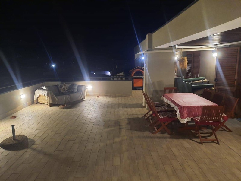 L'attico si compone di sette locali con cucina, salone ,cinque camere da letto e tre bagni.