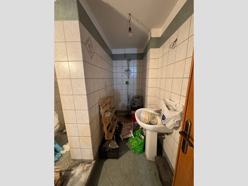 Il piano terra di 55 mq è composto da ingresso finestrato ,cucina abitabile, una camera che potrebbe fungere da salotto o stanza da letto, bagno e garage di circa 18 mq con saracinesca elettrica, rifinito e pavimentato.