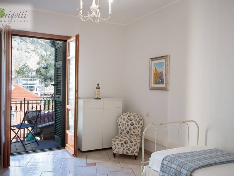 Varigotti: in posizione centralissima a soli 10 mt dal mare, proponiamo in elegante condominio appartamento trilocale posto al 3° ed ultimo piano in stabile dotato di ascensore. L'immobile è composto da ingresso, soggiorno con angolo cottura, camera matrimoniale, cameretta, bagno, due balconi, ripostiglio, locale sottotetto e box auto posto al piano terra delle medesima palazzina. Vista mare laterale.