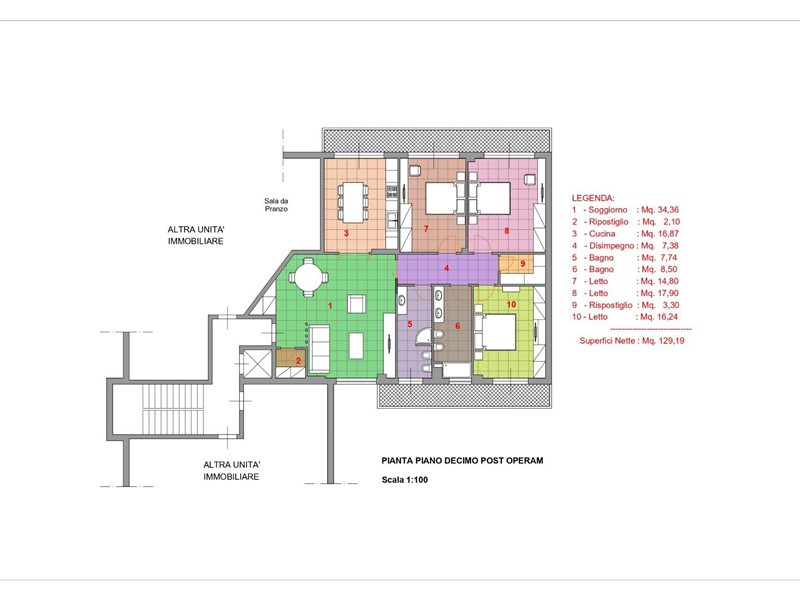L'appartamento ha una superficie totale di 130 metri quadrati ed è composto da ingresso, salone doppio, cucina abitabile con balcone, disimpegno , tre camere da letto, due bagni e ripostiglio.