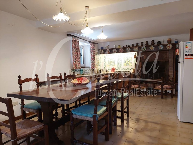 It is spread over three floors, where the basement, which is accessed both from the outside and from the internal staircase, is composed of a hallway, a large room with kitchenette and fireplace, a study, a bathroom, a closet and a room thermal; on the raised ground floor, accessed from the main entrance with external staircase and terrace, upon entering there is a large entrance with the characteristic layout of the rooms on the sides, two bedrooms, a large room, a bathroom and the kitchen with access from the outside; on the first floor there is a hallway, four bedrooms, a study, a bathroom and a wardrobe compartment.