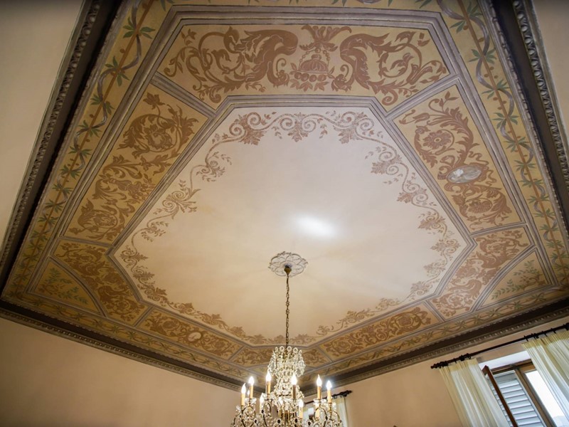 L'ingresso del palazzo è caratterizzato da bellissimi affreschi sul soffitto, cosi come quelli presenti all'interno dell'appartamento.