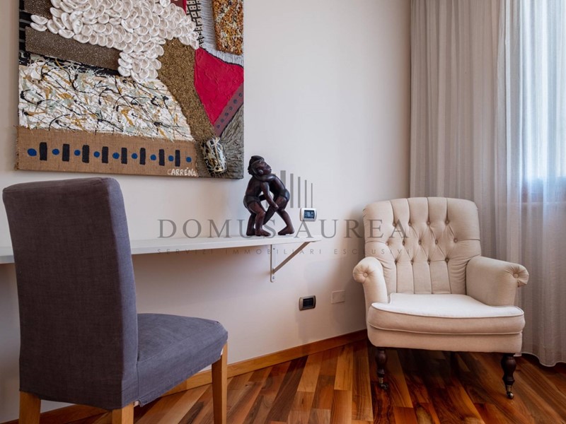 Attraverso una scenografica scala in marmo, impreziosita da un passamano in ottone, si accede con grazia alla zona notte, dove si aprono quattro ampie camere da letto, ciascuna con la propria anima, pensate per accogliere sogni, silenzi e nuove albe.