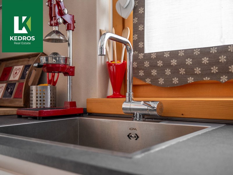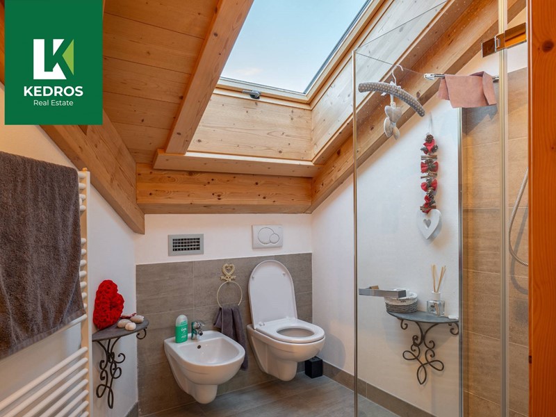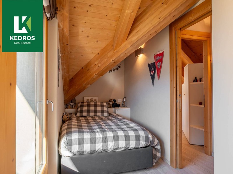 Le finiture sono un mix perfetto tra il fascino rustico della montagna - con pavimenti, serramenti e parapetti in legno - e la modernità dei dettagli nei bagni e negli interni, per un ambiente accogliente ma contemporaneo.