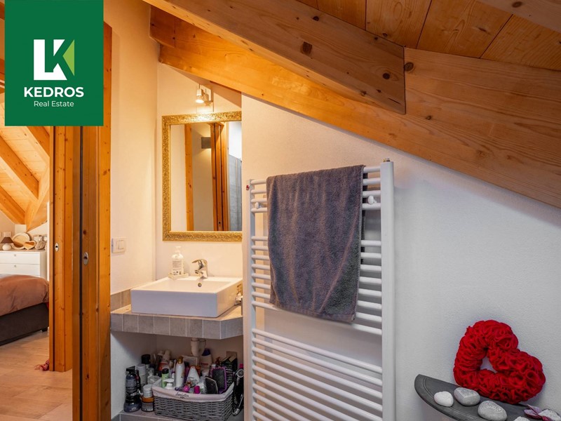 Al piano superiore, il calore del legno accompagna le tre camere da letto, un disimpegno e un secondo bagno, mentre altri due balconi offrono angoli di relax immersi nella natura.