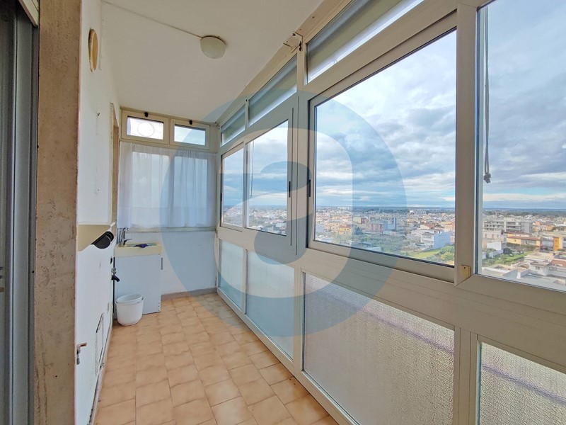ESTERNO: Appartamento al settimo piano in uno stabile di otto piani, dotato di ascensore. Balcone di 15 mq con esposizione a Est. Due posti auto assegnati, uno coperto e l'altro scoperto. Autoclave condominiale.
