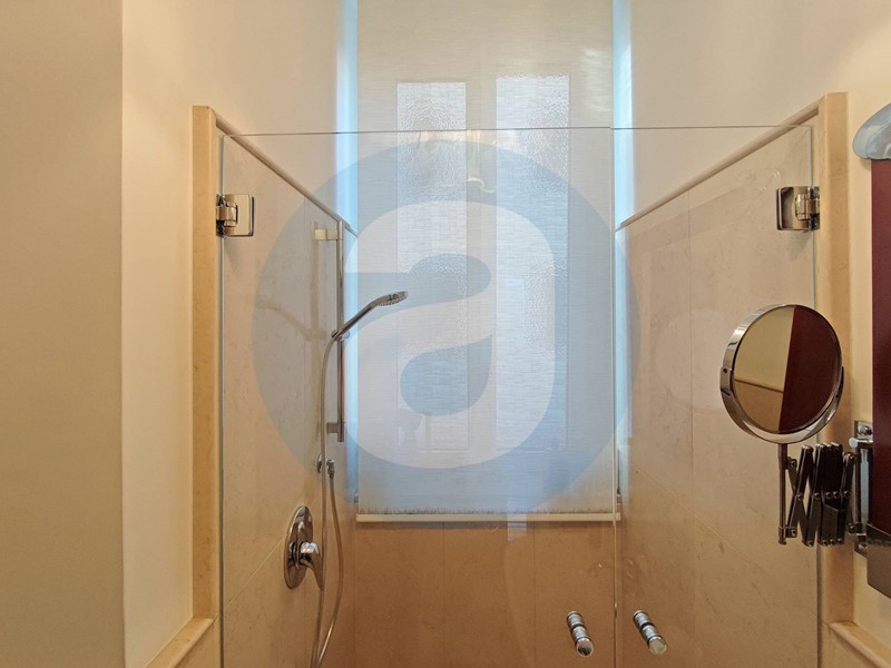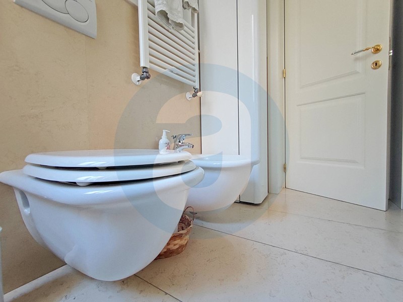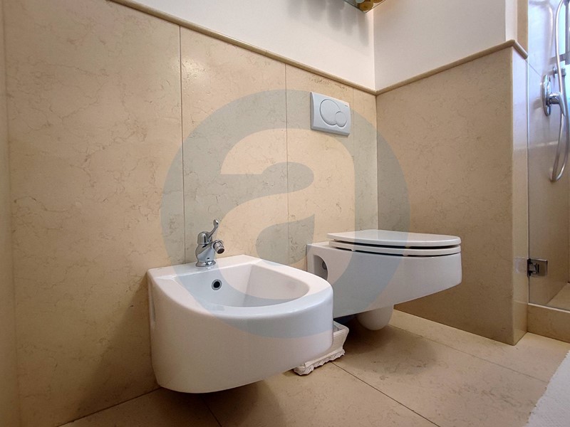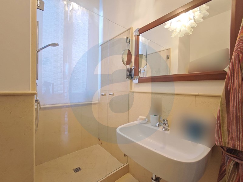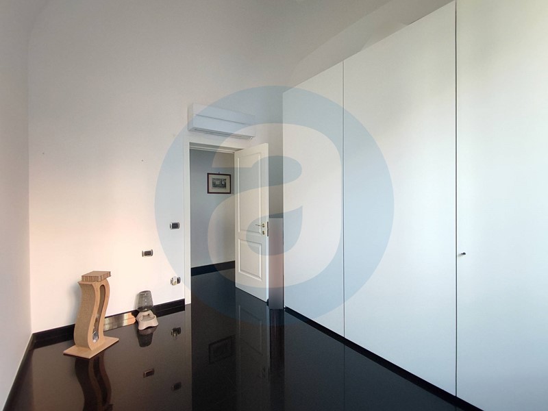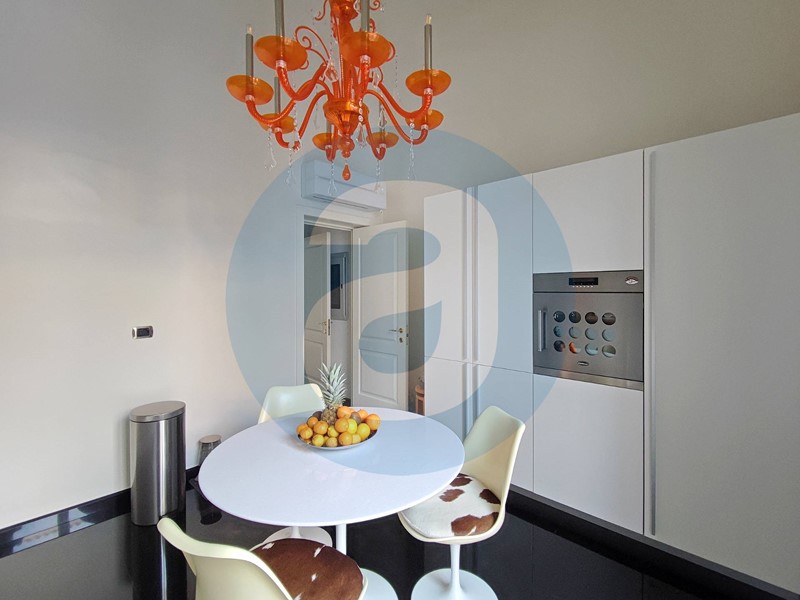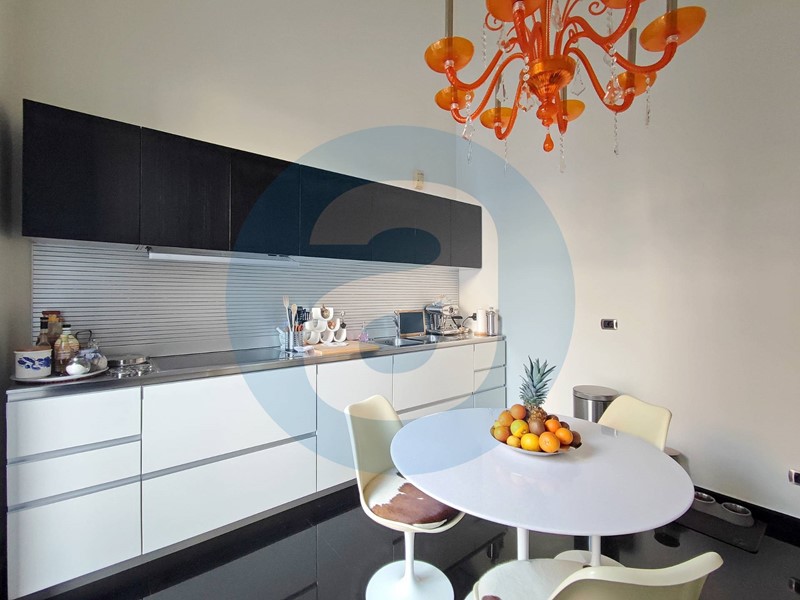 FINITURE: Pavimentazione in marmo granito nero in zona giorno e zona notte; marmo egiziano chiaro nei bagni. Infissi in alluminio a taglio termico con zanzariere. Porta di ingresso blindata con cerniera a scomparsa, porte interne in legno laccato bianco. Soffitti a volta con altezza massima 3,70 metri. Ambienti climatizzati con macchinari Mitsubishi. Riscaldamento autonomo. Videocitofono. APE C.