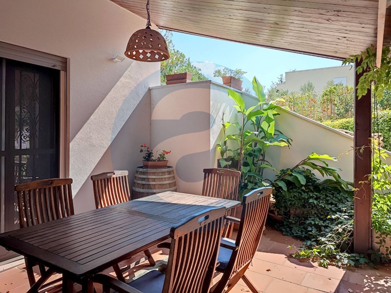ESTERNO: Giardino di 1100 mq composto da alberi ad alto fusto, alberi da frutto e piante della macchia mediterranea. Piscina di 70 mq. Box auto di 20 mq a piano terra con accesso diretto all'interno della villa. Patio coperto al piano primo. Balcone terrazzato di 36 mq al piano secondo. Intercapedine. Vano tecnico per batterie di accumulo.