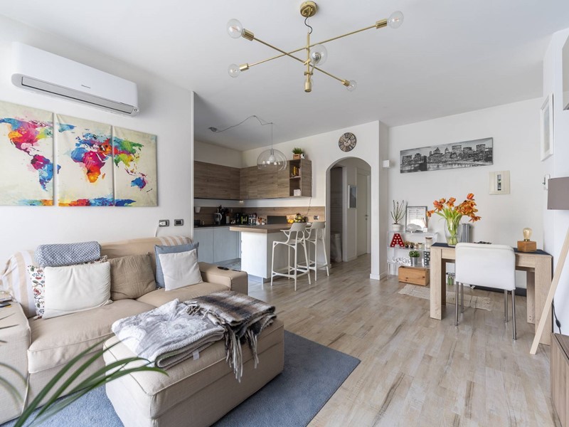 Riscaldamento autonomo, infissi in pvc in doppio vetro, tapparelle elettriche, pavimentazione in gres porcellanato e laminato, videocitofono, aria condizionata, porta blindata.