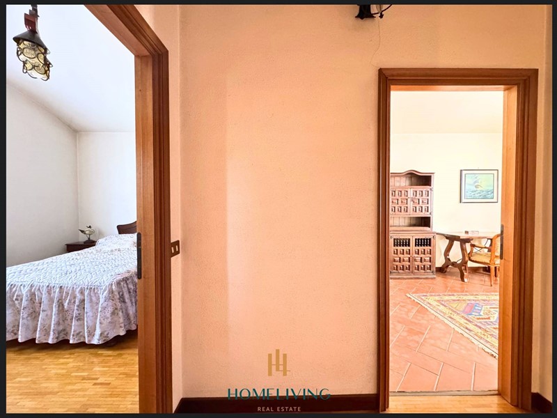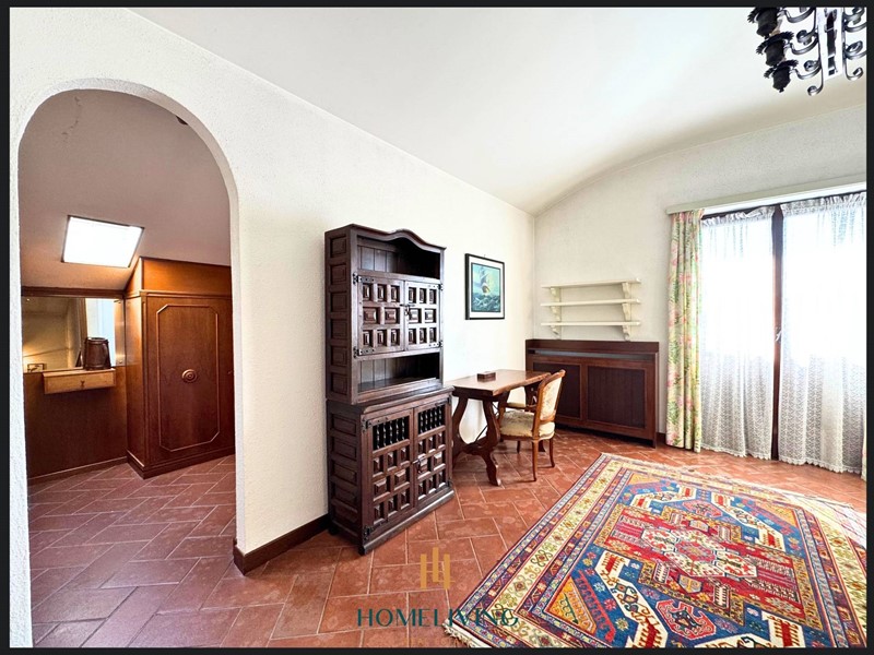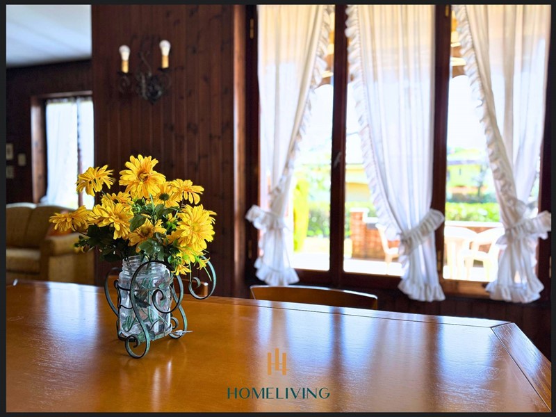 Aprendo il portoncino d'ingresso, il vialetto in pietra, porta all'ingresso principale che conduce ad un luminoso e spazioso doppio soggiorno, che si affaccia al patio lastricato in cotto esposto a sud, che gode del verde e della profondità del giardino, dove troviamo un'area piastrellata con beole, che si presta alla copertura con gazebo, la cucina abitabile gode di luce naturale dalla finestra che esposta a sud/ovest, troviamo anche un'ampia stanza adibita a studio nella parte adiacente all'ingresso, il disimpegno, porta alle due camere matrimoniali, con affaccio sul retro della villa esposte ad Est, che con le loro finestre che godono sempre del meraviglioso verde del giardino, il bagno finestrato completa la zona notte.