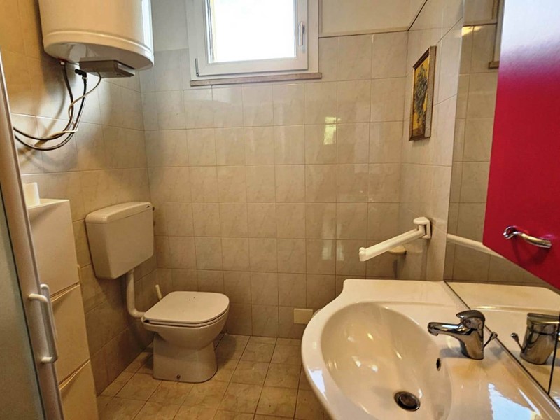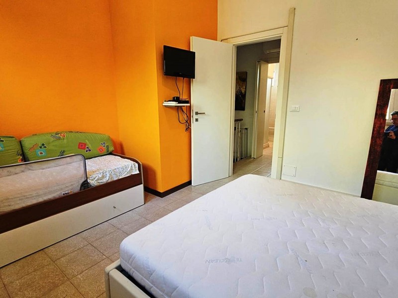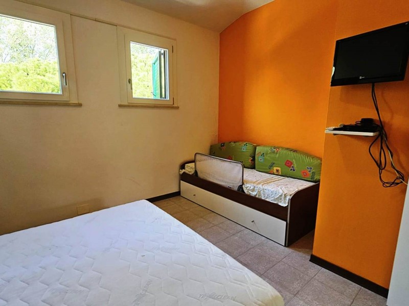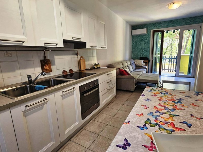 Villettina duplex al Green Residence. Scoperto privato con entrata indipendente, terrazzo, allinterno zona giorno con angolo cottura e bagno. In sottotetto due camere da letto es un ulteriore bagno. 1 posto auto privato. Tendaggi esterni elettrici, serramenti esterni in alluminio, serramenti interni in pvc, zanzariere, allarme, cappotto esterno. Climatizzata in ambedue i piani con pompa calore. Completamente arredata, con divano letto in zona giorno, cucina dotata anche di lavastoviglie, bagni con box doccia e lavatrice.