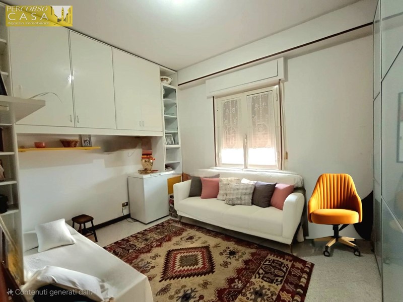 L' APPARTAMENTO, al piano quarto dotato di ascensore, è composto da ingresso, soggiorno, cucina abitabile, due camere, un bagno con vasca, due balconi panoramici, soffitta e lastrico solare condominiale.