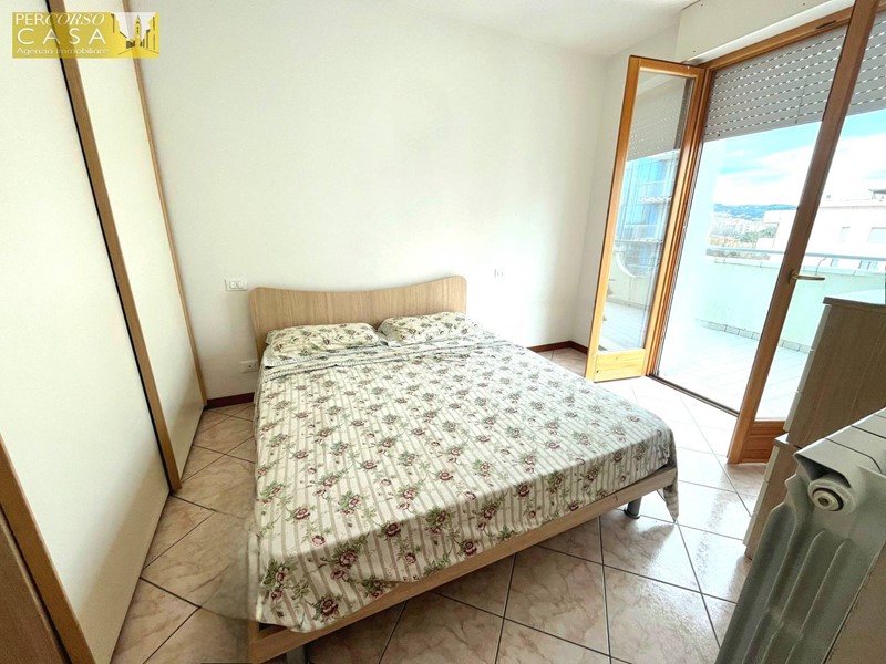 L'immobile si compone di: soggiorno con cucina a vista, accesso ad un AMPIO TERRAZZO semi perimetrale di Mq 30 circa con l'ideale esposizione (NORD - SUD - EST), disimpegno per la zona notte che ospita DUE CAMERE da LETTO di cui una MATRIMONIALE, entrambe con accesso al balcone ed un BAGNO con box doccia.