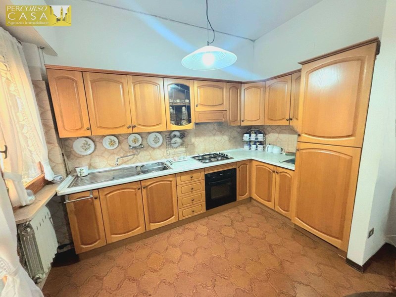 L'appartamento, al secondo piano di un edificio sito nella zona centrale del paese, è composto da ingresso, ampio soggiorno con terrazzo, cucina abitabile, disimpegno, tre camere da letto, 2 bagni e ripostiglio.