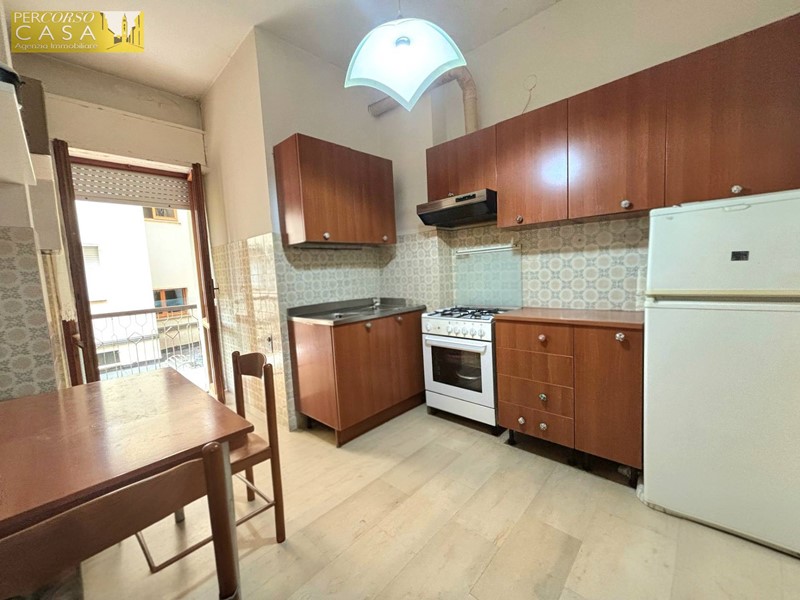 L'appartamento, sito al piano primo di un edificio dotato di ascensore, è composto da ingresso, soggiorno, cucina abitabile, due camere, un bagno e due balconi.