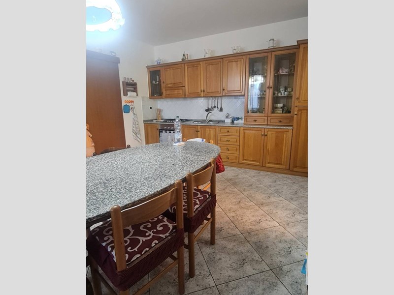Dal soggiorno si accede alla cucina abitabile, completamente arredata e dotata di tutti gli elettrodomestici necessari per la preparazione dei pasti e di un bel camino che può anche riscaldare la casa.