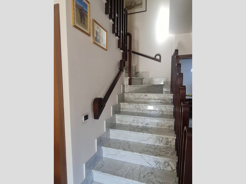 Tutti gli ambienti sono ben distribuiti e ben illuminati dalle finestre e dai balconi che affacciano sui lati della casa. I bagni sono 3 e situati al piano terra (zona giorno), primo piano (zona camere) e seminterrato (zona garage).