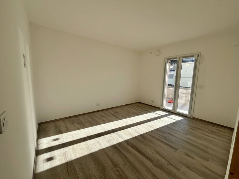 L'appartamento di 76mq più 86mq di superficie esterna dispone di un soggiorno con cucina a vista, una camera matrimoniale, uno studio e un bagno. Completa l'immobile un generoso giardino con corte privata e ingresso indipendente,