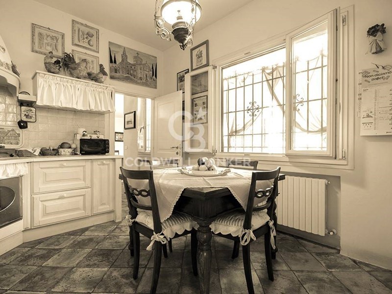 Il vialetto pedonale ci accompagna fino all'entrata ed al portico frontale un vero "salotto all'aperto". Una zona living importante e luminosa, che prende luce su tre lati, con camino collegata alla sala da pranzo. La cucina è abitabile ed ha accesso diretto al secondo portico, dove sarà un piacere mangiare riparati ma all'aria fresca. Questi ambienti godono la vista del giardino e dei vigneti davanti a casa.