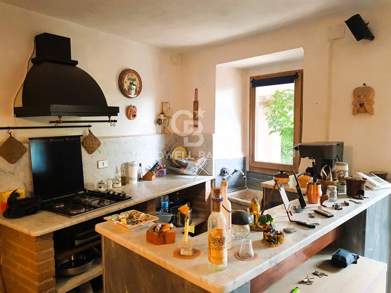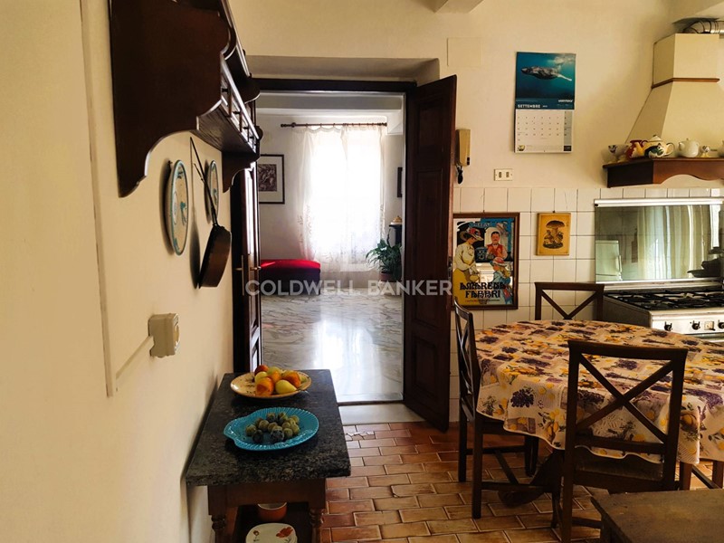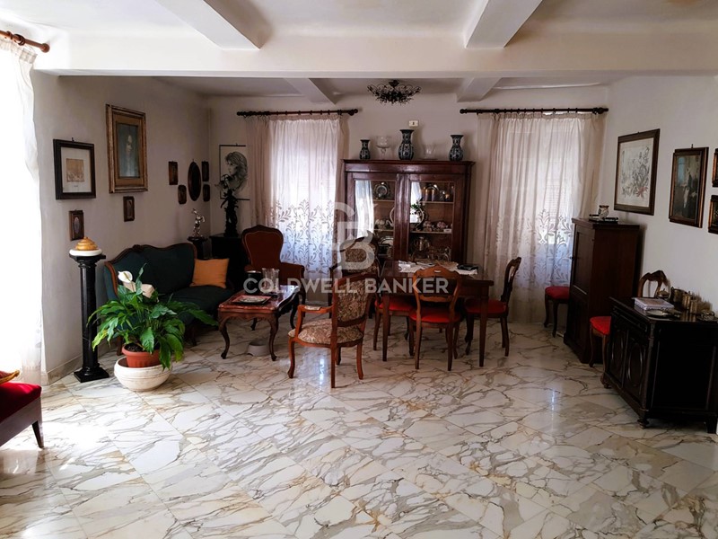 La casa è formata da un pianoterra open space con grande camino e confortevole bagno, entrata indipendente e giardino di 160 mq.; primo piano con ampia e luminosa sala, cucina, soggiorno, bagno, stanza-ufficio e terrazza panoramica in marmo calacata di 30 mq. vista mare; secondo piano con tre camere da letto, di cui una padronale, doppio disimpegno e due ulteriori bagni. Le pavimentazioni ed i rivestimenti interni sono in pregiati marmi ed antiche cementine.
