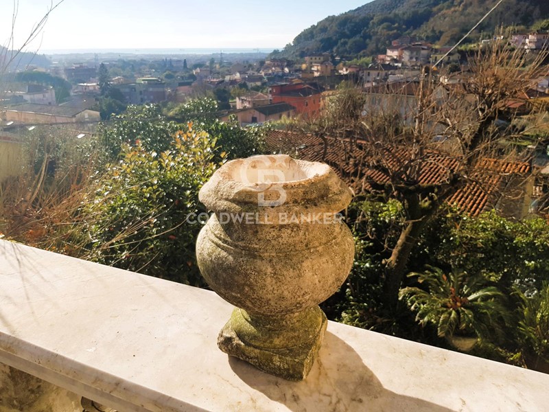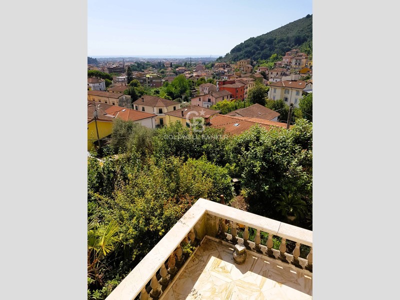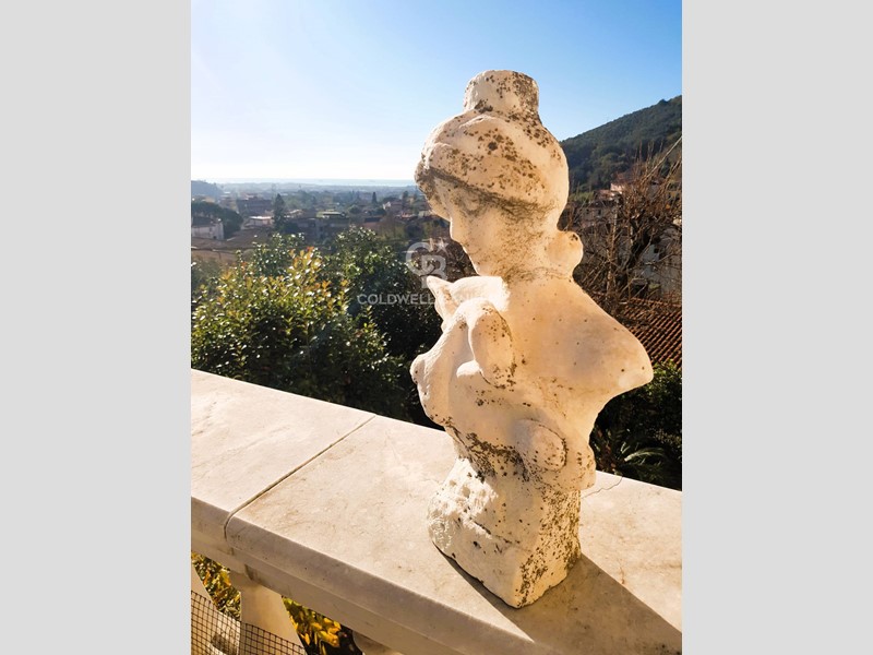 Questa villa indipendente vista mare nella prima collina di Carrara circondata da vigne, è stata la dimora nel '900 dello scultore italiano Vanelli, e il giardino è ancora ricco delle sue opere e sculture che rimarranno incluse nella vendita della casa.