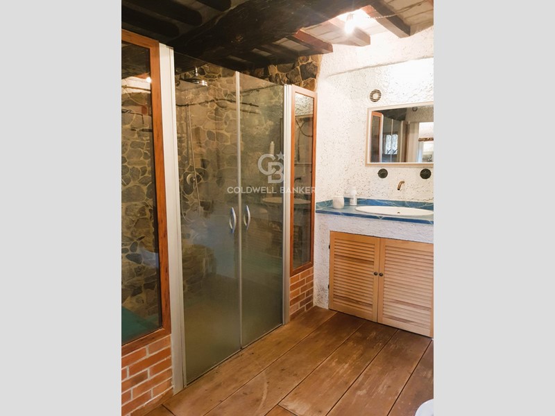 Pertinenze della proprietà una cantina di 23 mq ed un ripostiglio di 4 mq, due parcheggi auto di cui uno scoperto di 30 mq ed uno coperto di 60 mq. Vista l'architettura della casa ed i suoi parcheggi privati, si adatta ad essere facilmente convertita in due od anche tre abitazioni separate, oppure in una struttura ricettiva ad uso turistico.