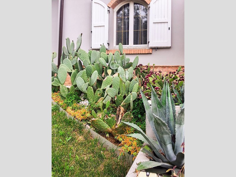 Un grazioso marciapiede in ciotolato percorre tutto il perimetro della casa e conduce al portico di ingresso che nelle giornate estive può diventare un secondo salotto all'aperto.
