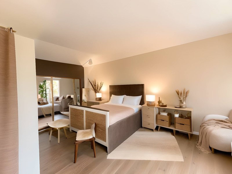 Percorrendo le scale esterne si raggiunge la zona notte composta da due camere matrimoniali combacianti.