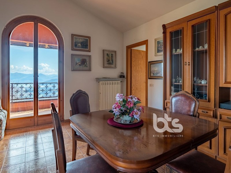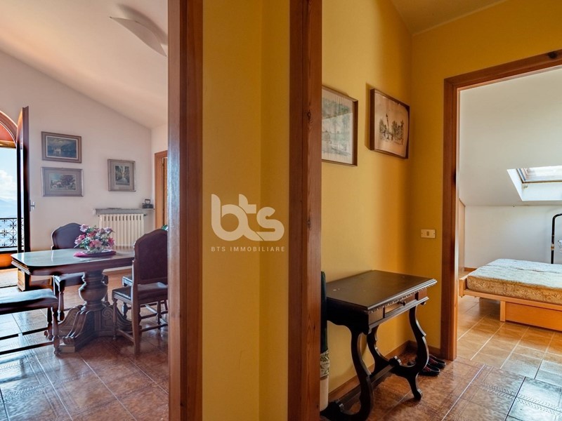 L'ingresso si apre su un accogliente soggiorno dotato di camino accogliente, con accesso diretto sul balcone con vista panoramica. La cucina abitabile, situata adiacente al soggiorno, è completamente arredata e offre ampio spazio per organizzare piacevoli cene in famiglia.