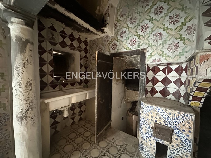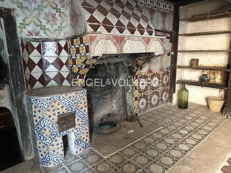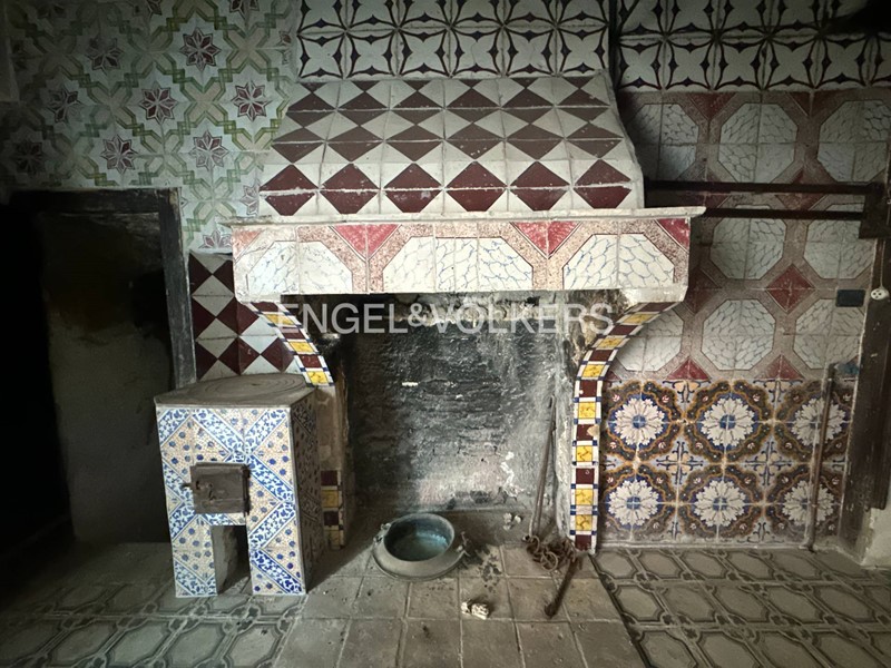 Una cucina abitabile con camino rivestito da autentiche maioliche napoletane del 700, ideale per momenti conviviali.