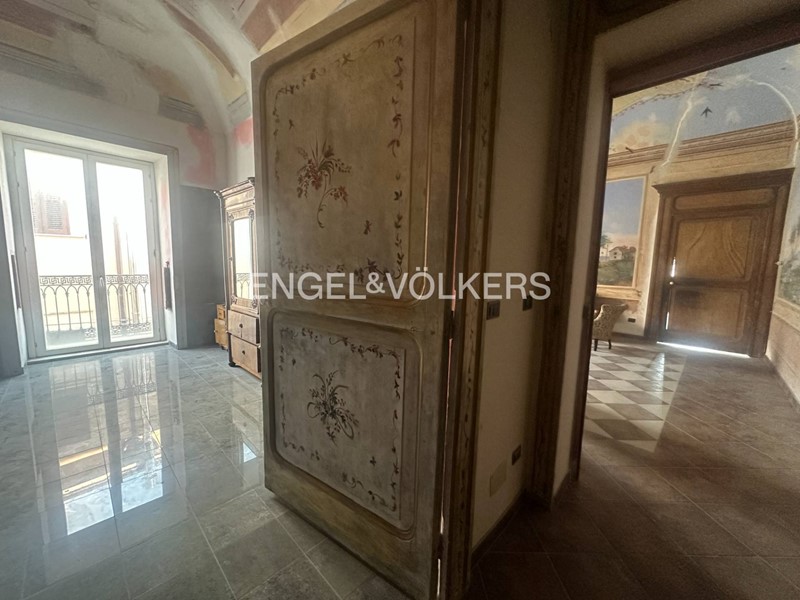 Lingresso si apre su un ampio disimpegno che conduce a spazi ricchi di charme e storia: